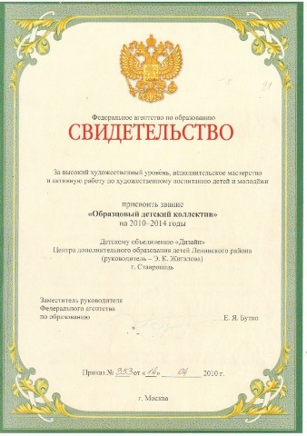 За высокий художественный уровень и исполнительское мастерство, активную работу по художественному воспитанию детей и молодежи коллективу детского объединения «Дизайн» трижды присвоено звание «Образцовый детский коллектив» (2010г., 2015г., 2019г.).